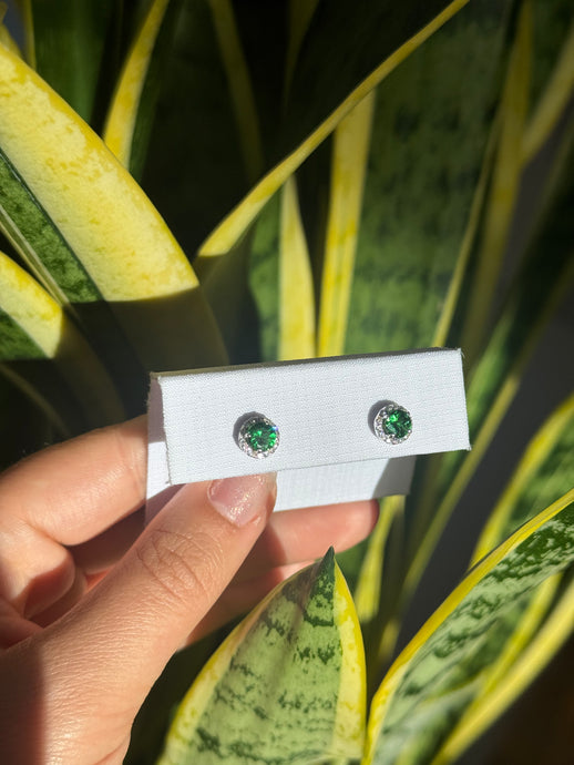 Tsavorite Garnet & Diamond Stud Earrings (3 pronged)