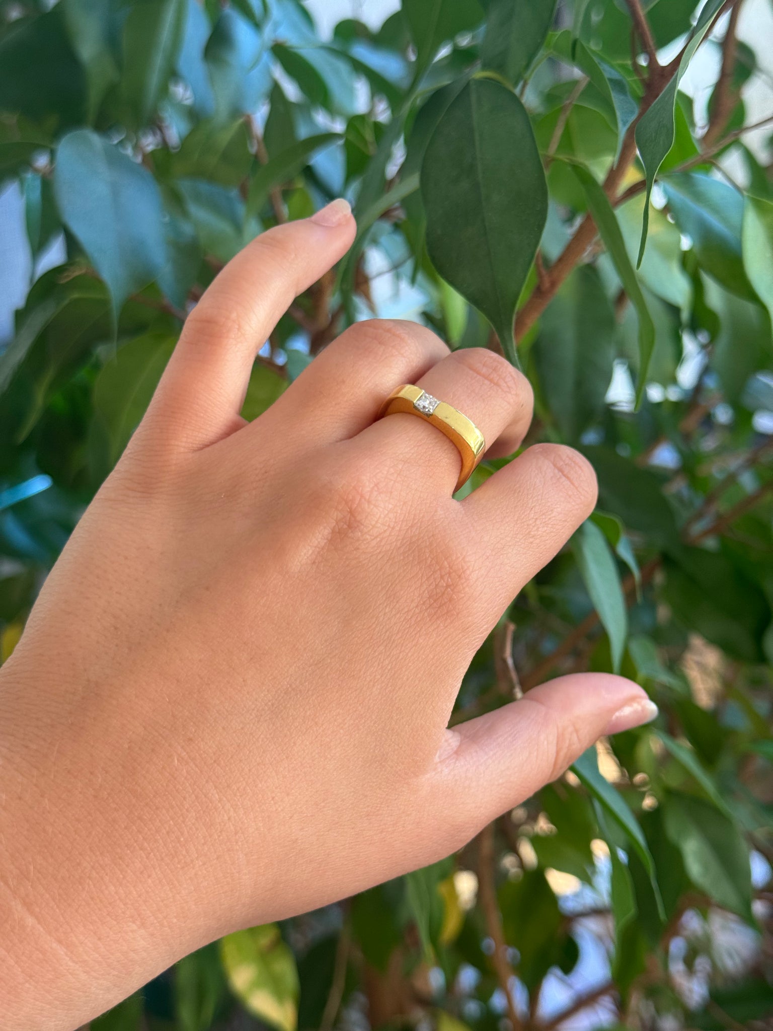 Derek Simpson designed Soft Square shaped 18k yellow gold band with princess cut diamond (.36ct)